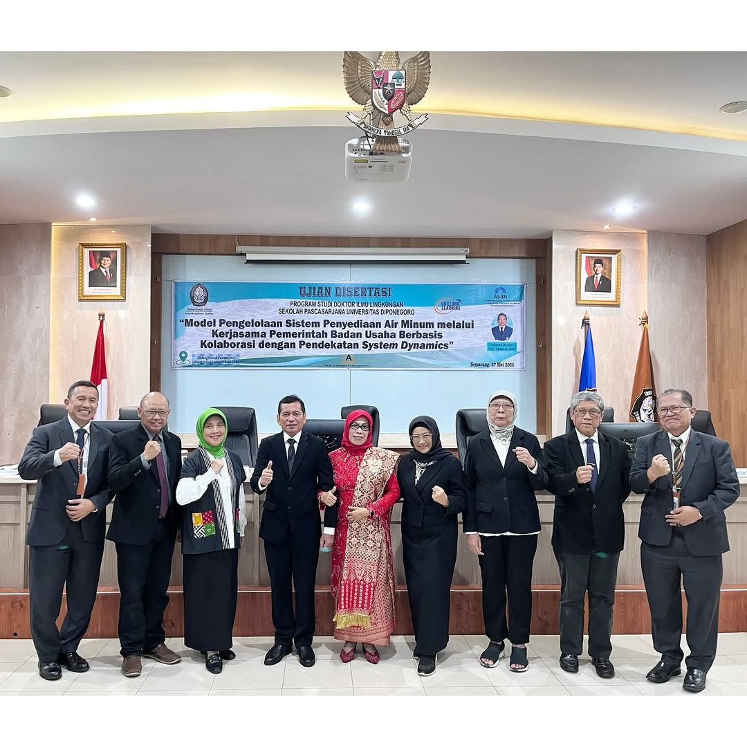 Telah berlangsung hari ini Ujian Disertasi mahasiswa Doktor Ilmu Lingkungan Sekolah Pascasarjana Undip a.n. Jusman Rahim dengan judul disertasi “Model Pengelolaan Sistem Penyediaan Air Minum melalui Kerjasama Pemerintah Badan Usaha Berbasis Kolaborasi dengan Pendekatan System Dynamics.”