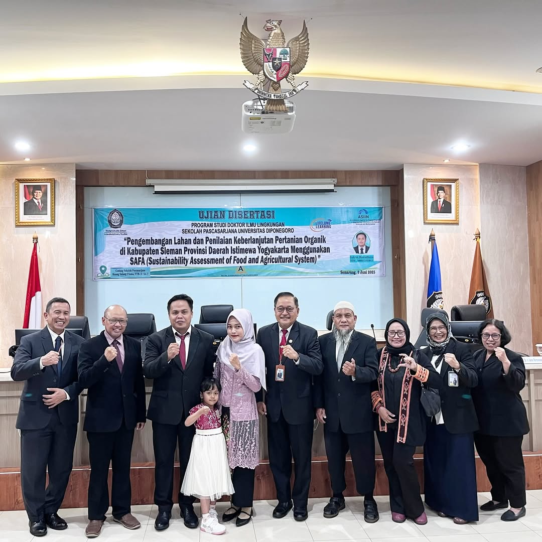 Telah berlangsung hari ini Ujian Disertasi mahasiswa Doktor Ilmu Lingkungan Sekolah Pascasarjana Undip a.n. Sukron Romadhona dengan judul disertasi “Pengembangan Lahan dan Penilaian Keberlanjutan Pertanian Organik di Kabupaten Sleman Provinsi Daerah Istimewa Yogyakarta Menggunakan SAFA (Sustainability Assessment of Food and Agricultural System).”