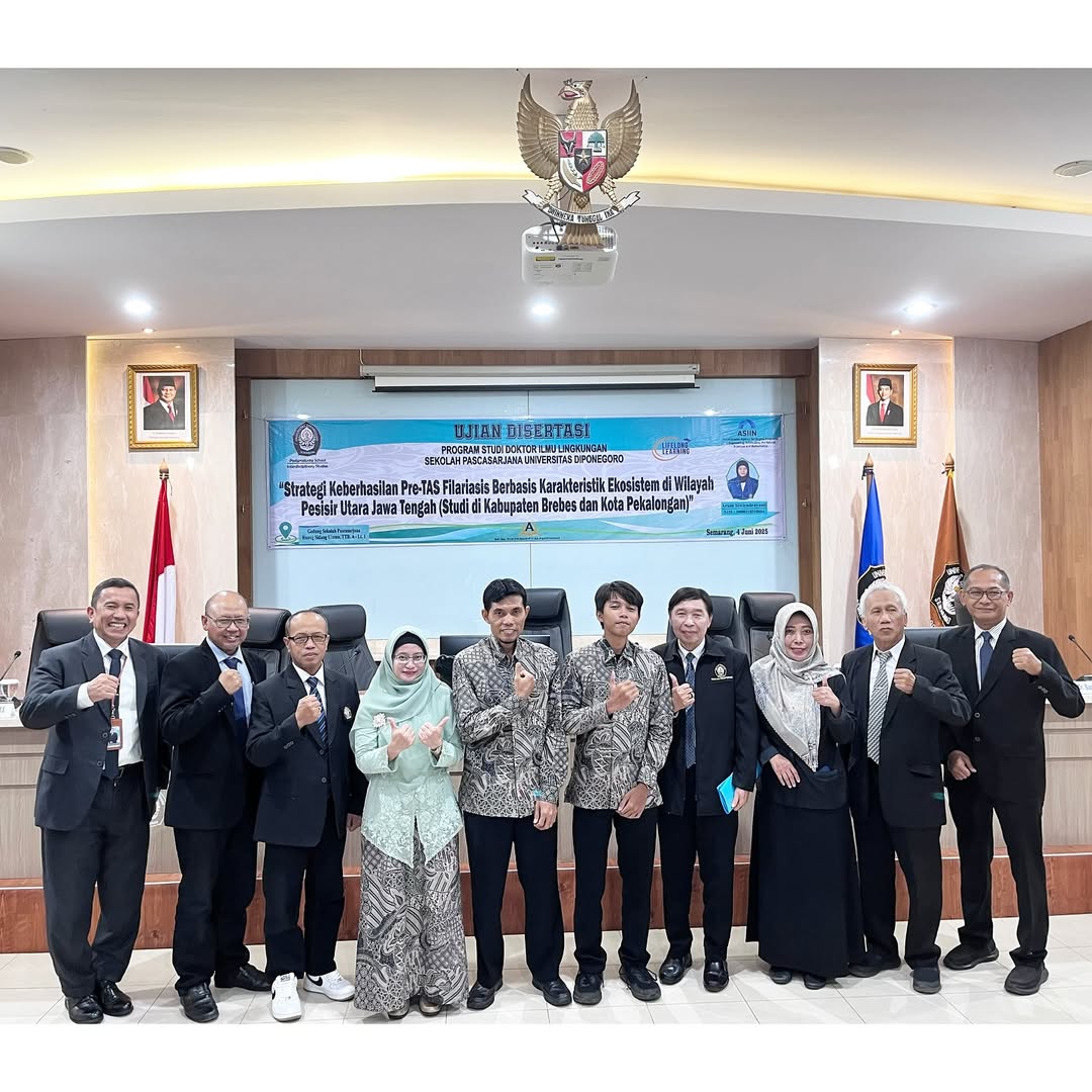 Telah berlangsung hari ini Ujian Disertasi mahasiswa Doktor Ilmu Lingkungan Sekolah Pascasarjana Undip a.n. Arum Siwiendrayanti dengan judul disertasi “Strategi Keberhasilan Pre-TAS Filariasis Berbasis Karakteristik Ekosistem di Wilayah Pesisir (Studi di Kabupaten Brebes dan Pekalongan).”