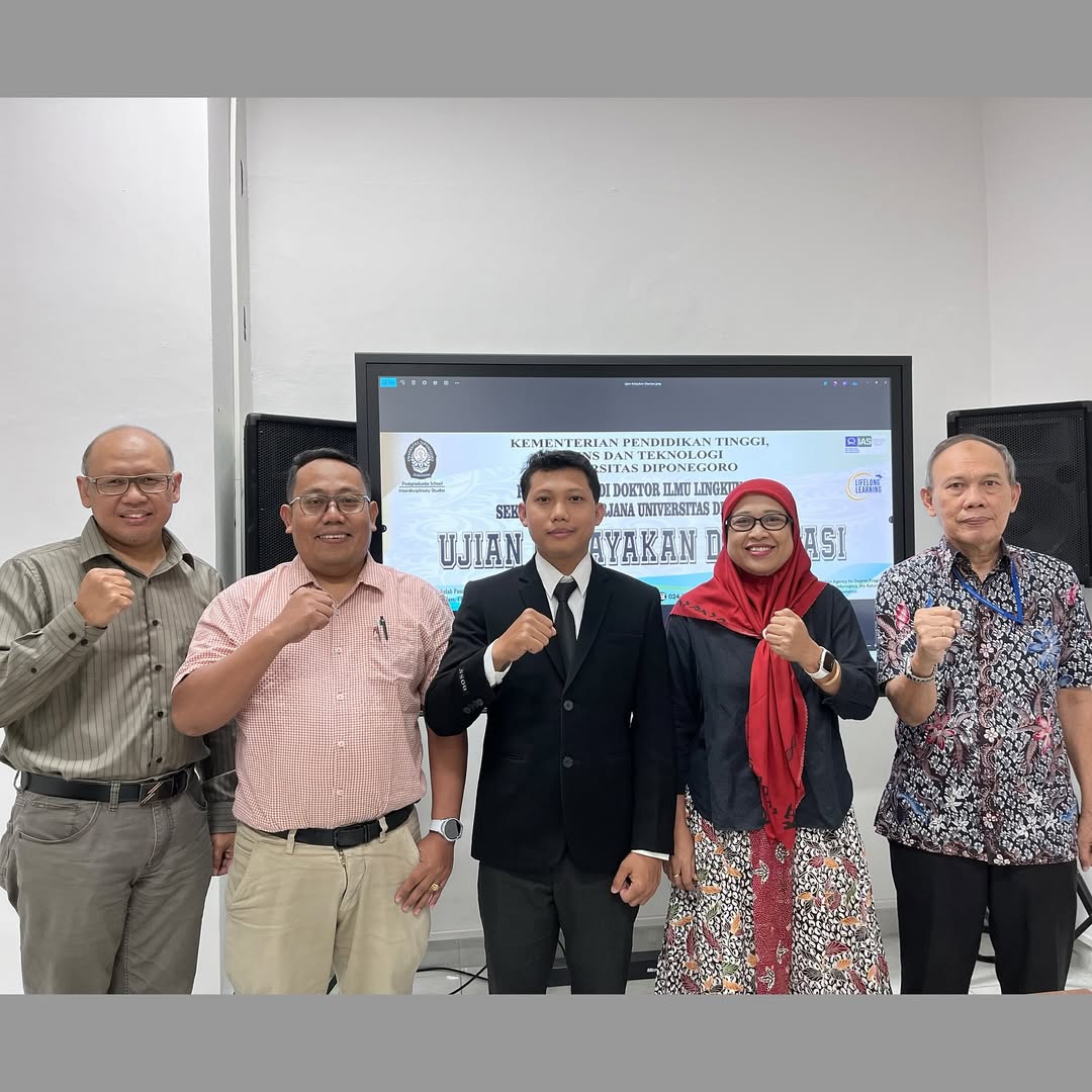 Telah berlangsung hari ini Ujian Kelayakan Disertasi mahasiswa Doktor Ilmu Lingkungan Sekolah Pascasarjana Undip a.n. Ilham Alkian dengan judul disertasi “Deteksi dan Fotodegradasi Polutan pada Air Limbah Farmasi Menggunakan Material Karbon Dots.”