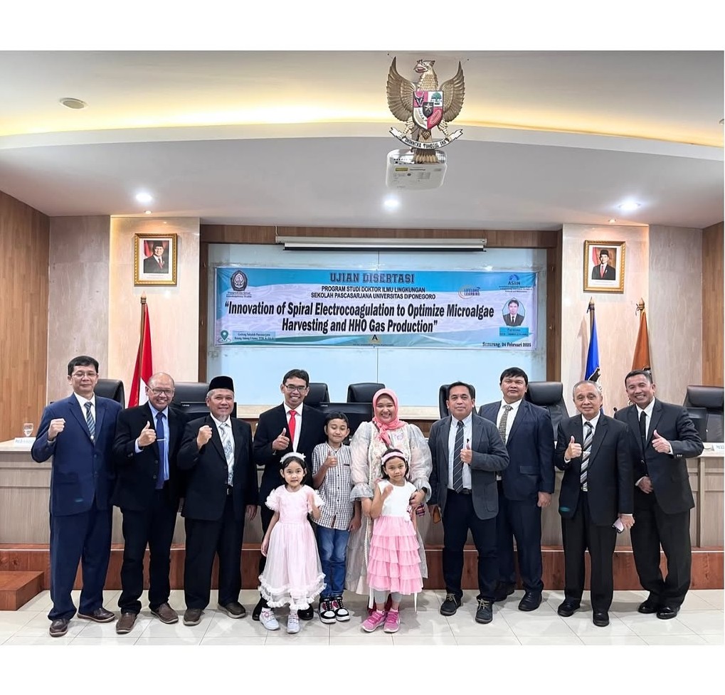 Today, Dissertation Defence of Purwono is held in Doctoral Program of Environmental Science. The title of dissertation entitled “Innovation of Spiral Electrocoagulation to Optimize Microalgae Harvesting and HHO Gas Production.”